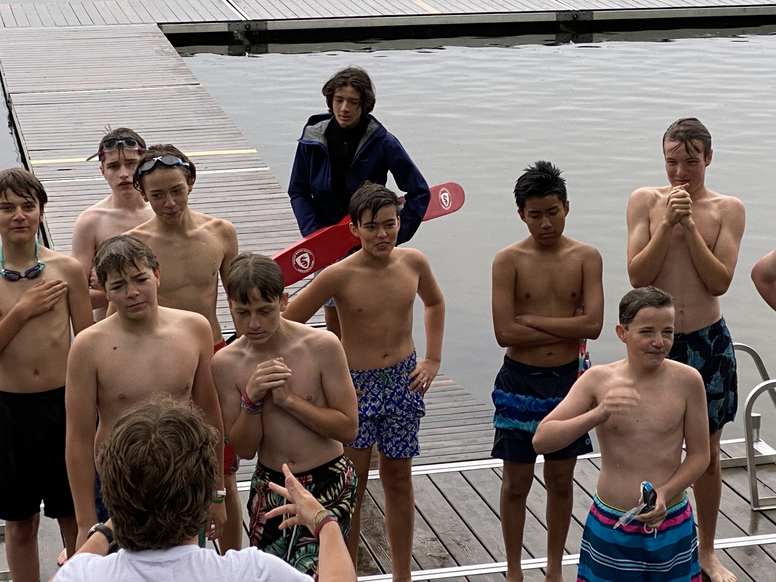The whole camp enjoyed our tradition of Pizza Friday for lunch with a side of salad. As lunch came to a close, we cleaned our cabins, tightened our beds, and proceeded to our afternoon activities. A couple of badges were earned today – Ronan P. earned his Junior woodshop badge, Johann D. earned his junior soccer badge, and Manny T. got his junior sailing badge, “The Deckhand.”