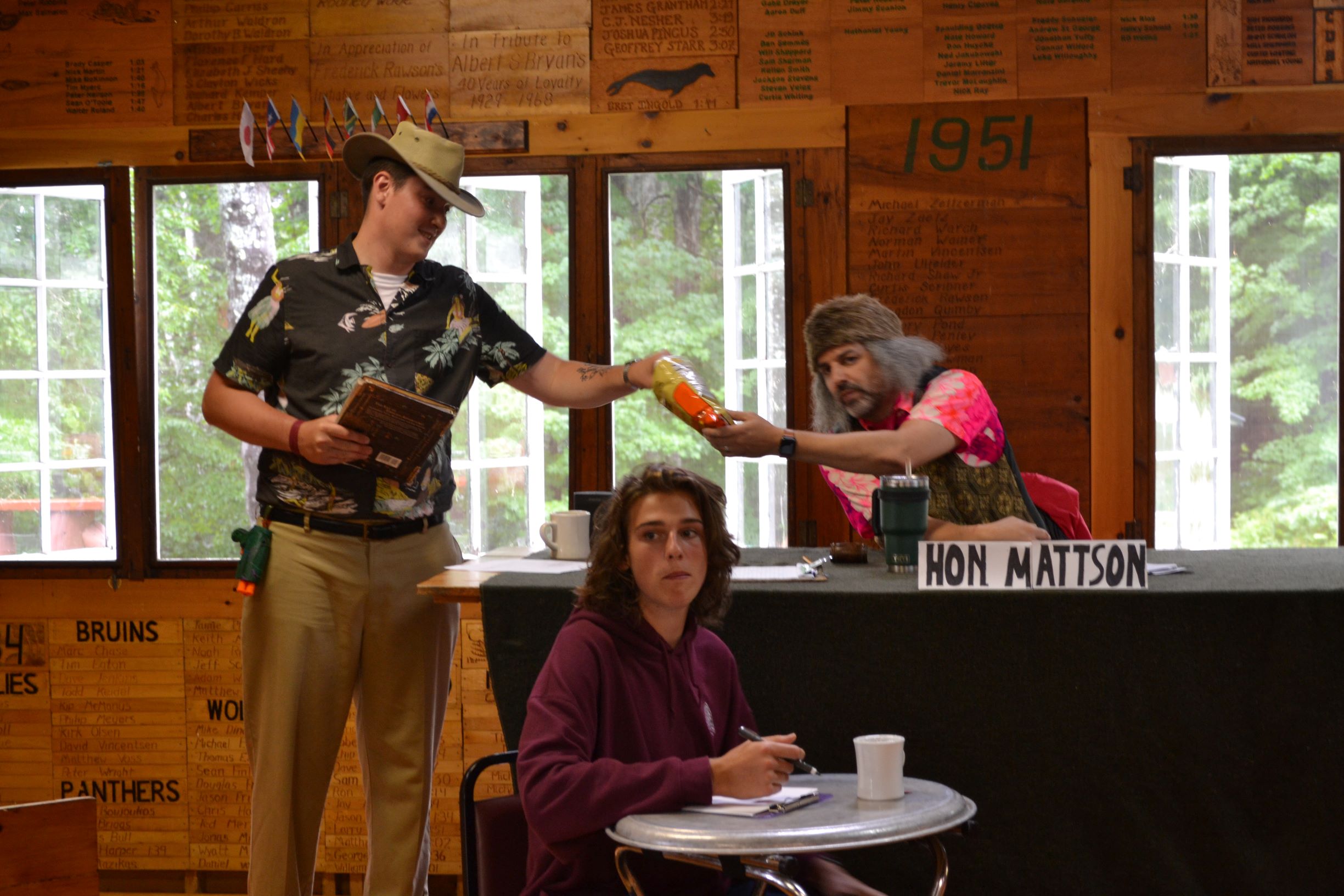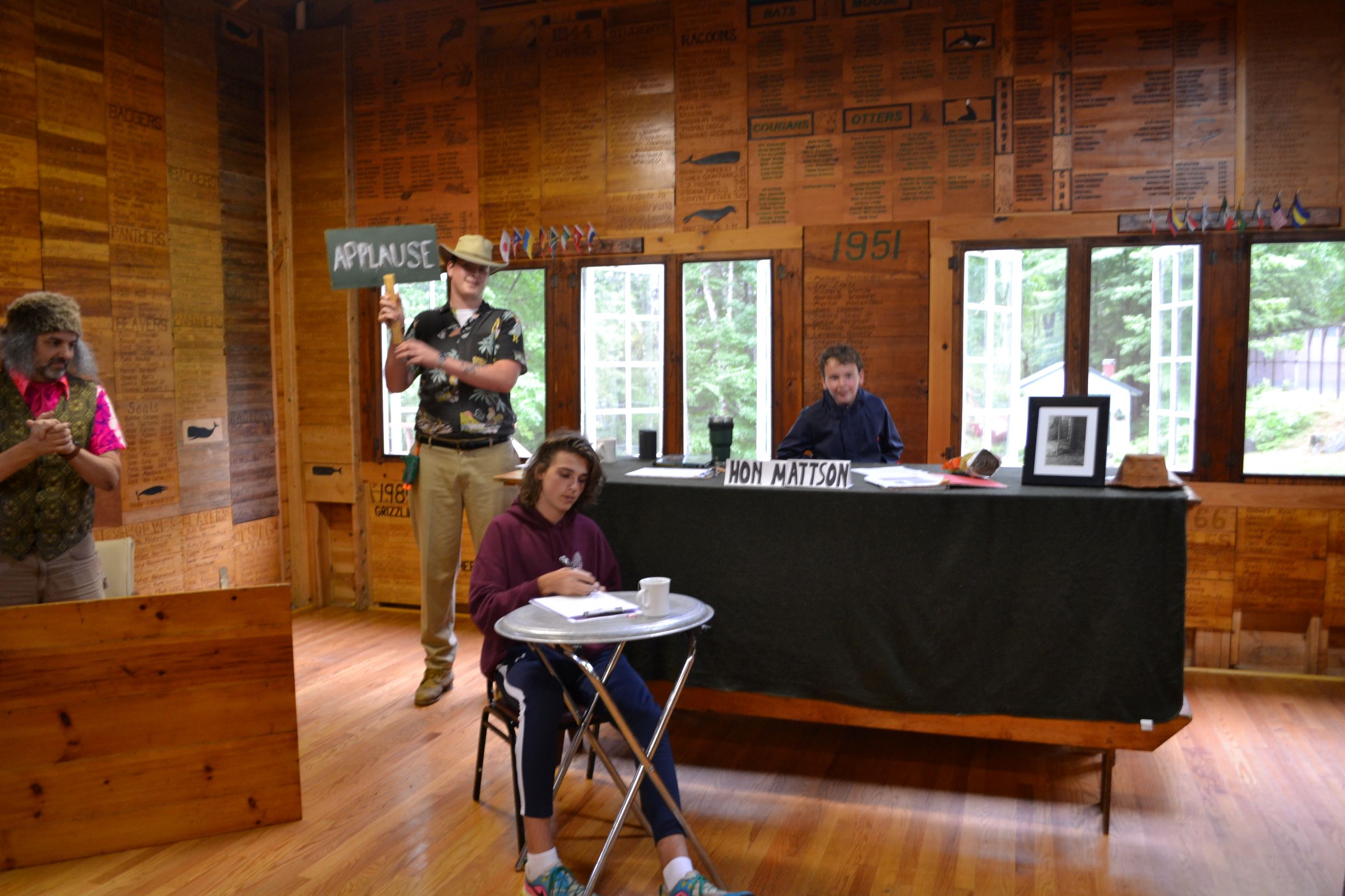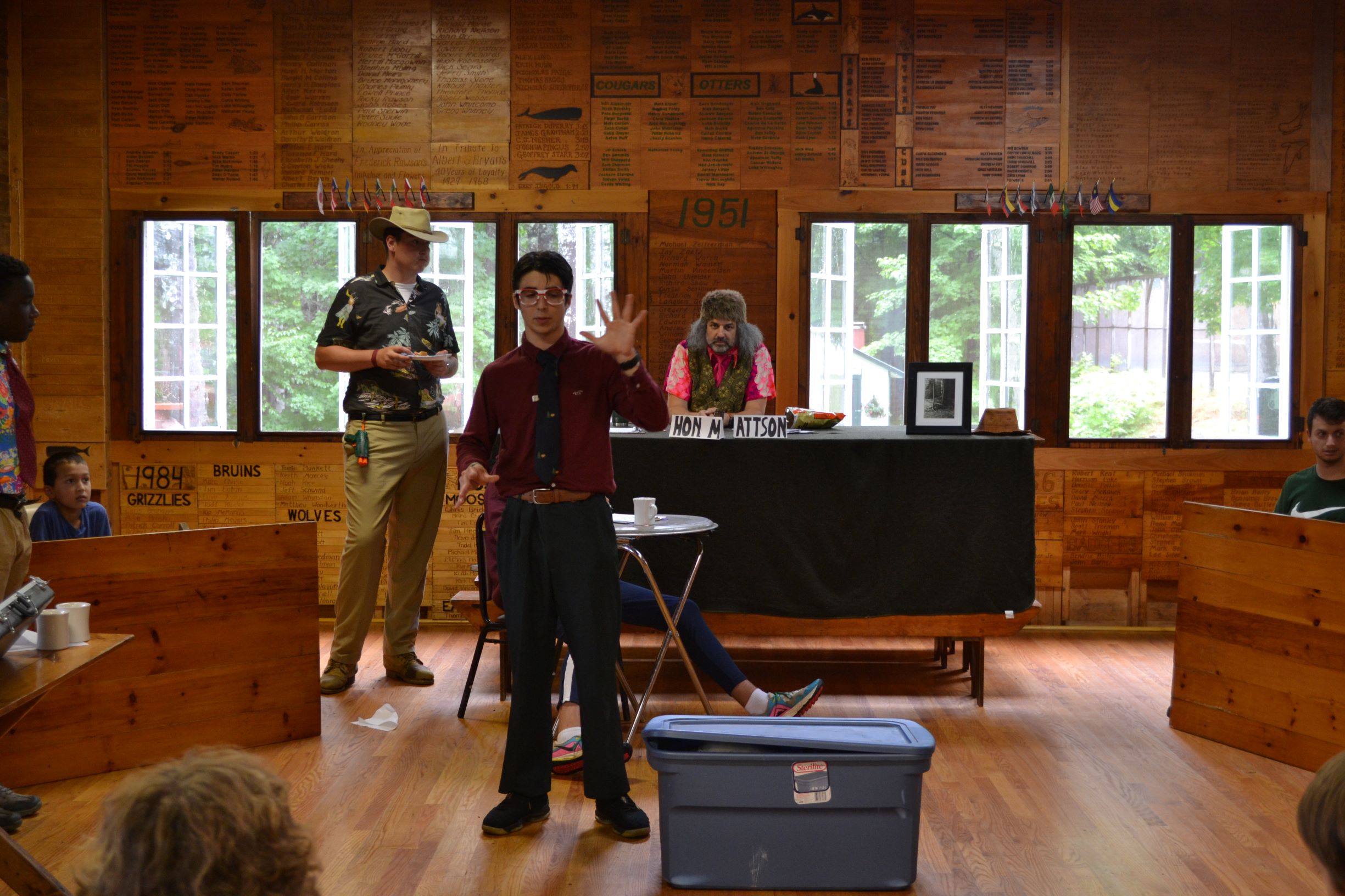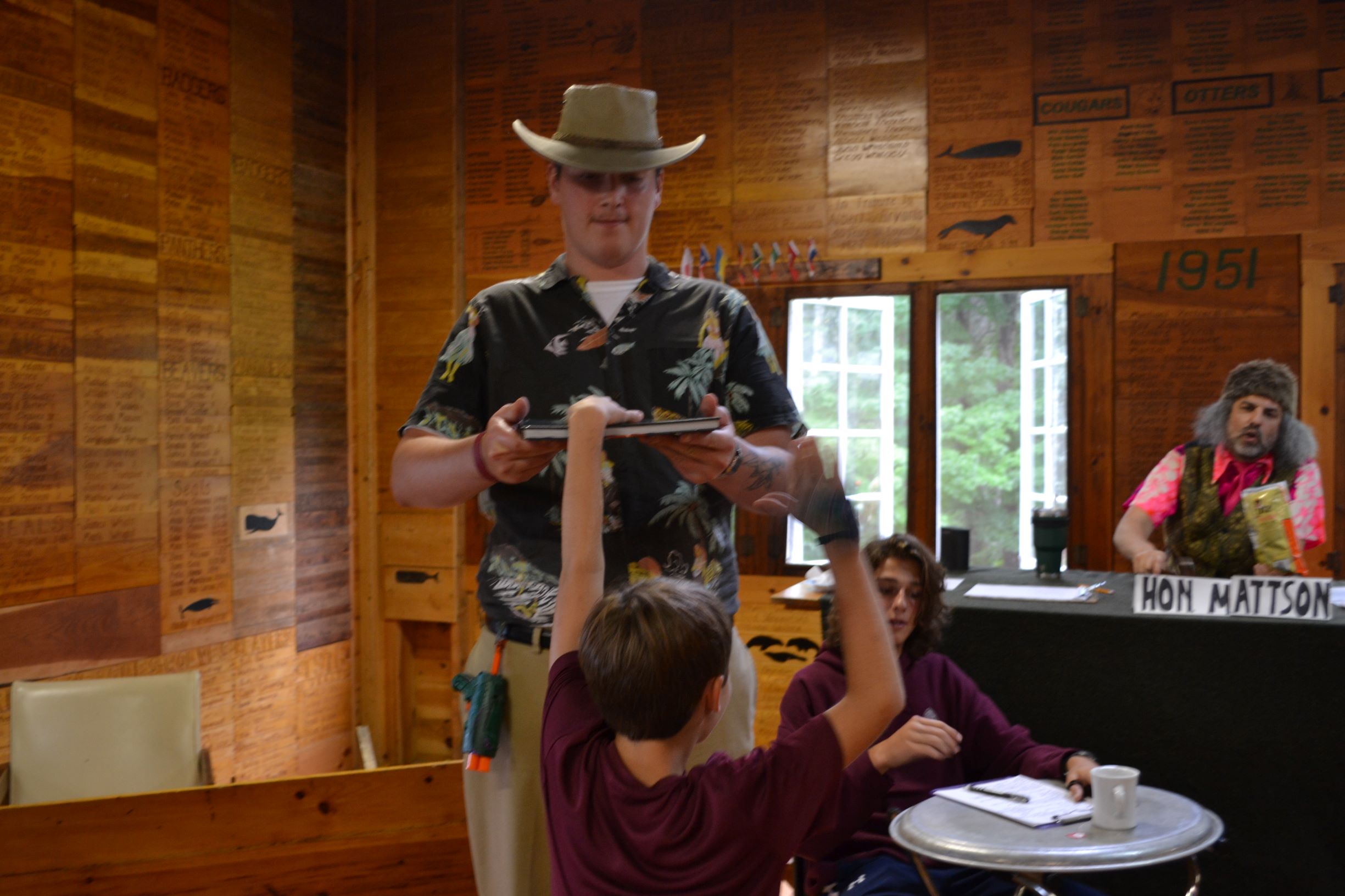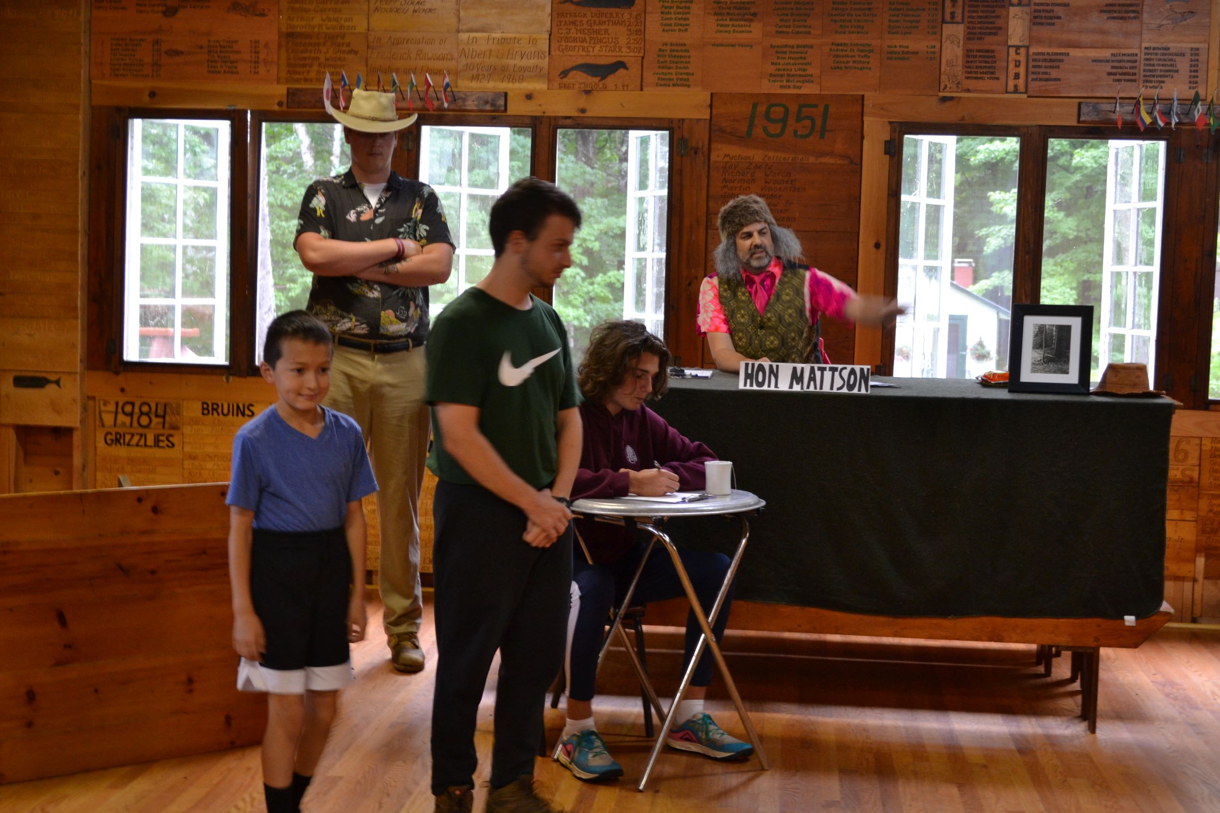Today, in the wee small hours of the morning, an arrest was made in Lower Camp. Detained by the on-camp authorities, George K. has been accused of being the notoriously mysterious Midnight phantom. After several pranks already this one summer, the unrest around camp couldn’t be higher. Campers and staff alike waited, with bated breath through the day, for the trial. At 4 p.m. MST (Musc standard time) in the courtroom of the Honorable Judge Mike Mattson, it began. The entire camp took their seats for proceedings. The prosecution was led by Seabass Tringale and Jungle Jeff, the Defense was Eric Traub and Joaquim Bila. The jury of George’s “peers” were the C.I.T. ‘s and Scarface. In the opening statements the prosecution alleged that George was the only ever Midnight Phantom charging him with three counts of second degree mischief, while the defense out-right denied the claim and plead not guilty. The first witness called to the stand by the prosecution was Scarface. Three members of the crowd were also brought up to re-enact the bizarre and, frankly, alarming story. Scarface claimed that he first met George in the late 1990’s in Columbia where the two of them set up a large candy smuggling empire into the United States via Portland and Cape Cod. Once that was established, George began infiltrating Birch Rock with all this illegal candy. This would explain how George was able to distribute the stuff into the camper ranks. We know this is all true because the bailiff (little Seth Brewster) had Scarface swear before the court on the Idiot’s Guide to Bird Watching. George denied the allegations citing that he has “never been” to Columbia and that he is “only 10” years old. The journalist today didn’t hear the defense’s line of questioning due to the fact refreshments were brought in by the food vender. The sodas were cold anyway. The next witness called up was Jack’s Casino’s chief floor operator, Nicky K., who swore before the court on the D and D Players Handbook. Nicky told the story of how a few days before this very trial, he woke up in his cabin and found that, not only had his pet rock named Potato had been stolen, but also he, and his fellow cabin mates, had been covered in tortillas and that on the floor “MP” was also spelled in tortillas. Prosecutor Seabass claimed, but was unable to prove, that George himself speaks fluent tortilla just as the Midnight Phantom clearly can. Nicky K. is quoted to have said that George is, indeed, the Midnight Phantom including the words “no cap” proving his seriousness. Jungle Jeff, however, brought out the most incriminating piece of evidence of the afternoon when he revealed to the crowd a picture, taken in the middle of the night, of the tortilla packet wrapper on his bed! The crowd went wild, the journalist was covered in spit takes, even the bailiff couldn’t control the crowd. Absolutely wild turn of events! Again, the journalist did not hear the defense line of questioning after the picture was revealed due to delicious snacks being brought in yet again. Finally, George himself was called to the stand by the prosecution. He swore to tell the whole truth and nothing but the truth on a ham sandwich. Last week, there was an incident where trunks were removed from Bees Hive by the Midnight Phantom. Jeff was able to prove that George was seen entering and exiting the building, but George defended himself by citing the fact that he “lives there” and that he does that “everyday.” When the defense took the stand, they asked George to prove that he could lift an average trunk. George could not. The defense implored the jury, “if the trunk could not be lifted, you must acquit.” At this point in the trial, the journalist got bored and stopped taking notes, but other witnesses that took the stand are as follows: Judge Mike Mattson himself, Dr. Babe “the Abe” Tolkoff Phd. Md. Esquire the III, and Seabass, in the end, the verdict from the jury is that George K., beyond a reasonable doubt, is guilty of all charges. He has been sentenced to double dessert on a night of his choosing.